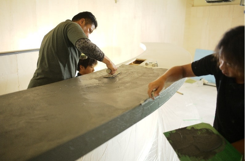 ・研磨は、材料が完全乾燥後さらに2~4時間後(冬場は翌日以降)ある程度硬化を確認してから電動の研磨機でペーパーがけしてください。