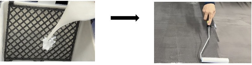 ②塗料容器に①で作った液を移し、刷毛及びローラーで塗布します。