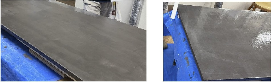 ※研磨をすることによって、濃淡がより分かりやすくなります(鏝押さえよりもくっきり出ます)。若干の艶が出る仕上がりになります。艶に関しては、水に濡らしたタオルを固く絞り水拭きすると落ち着きます。